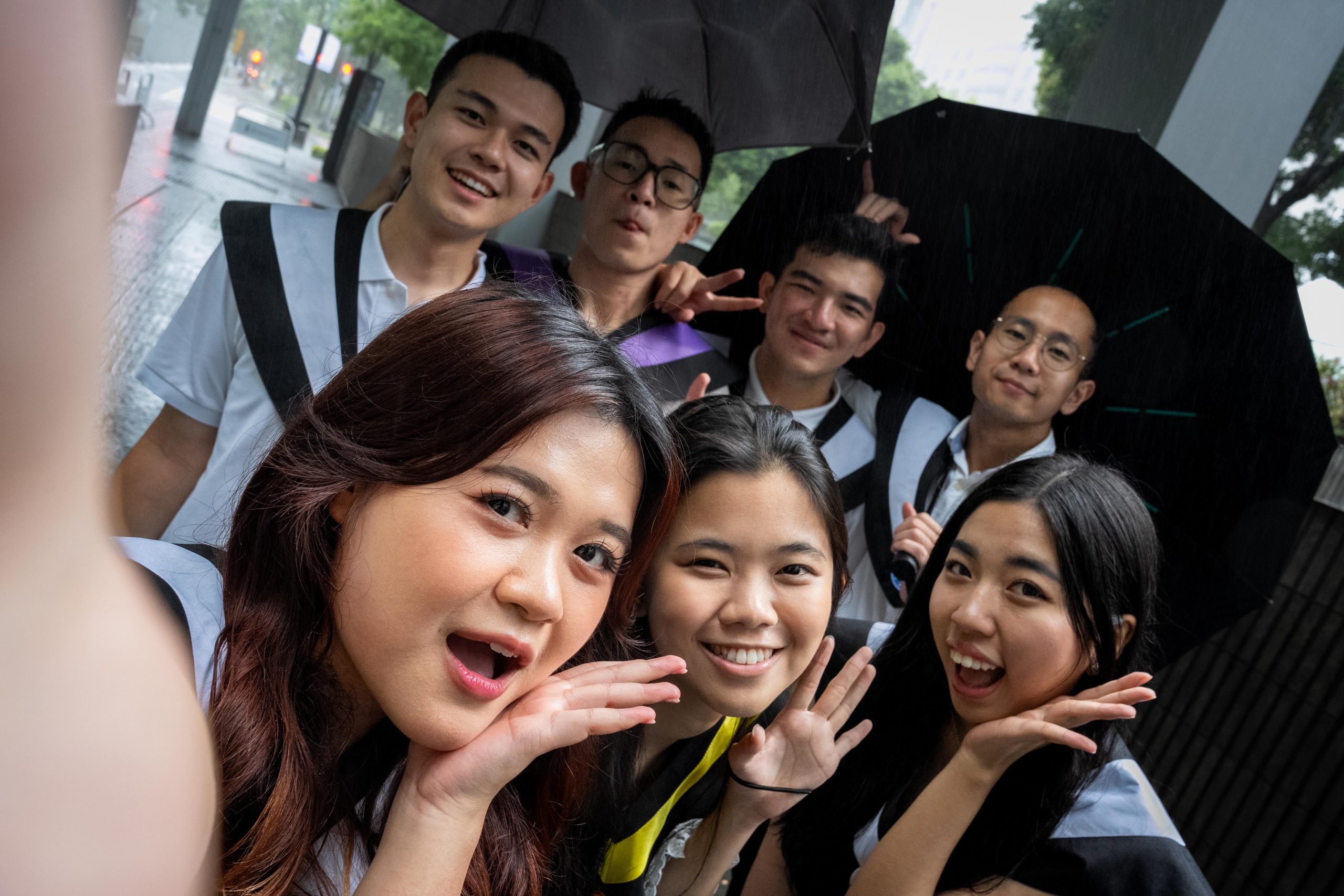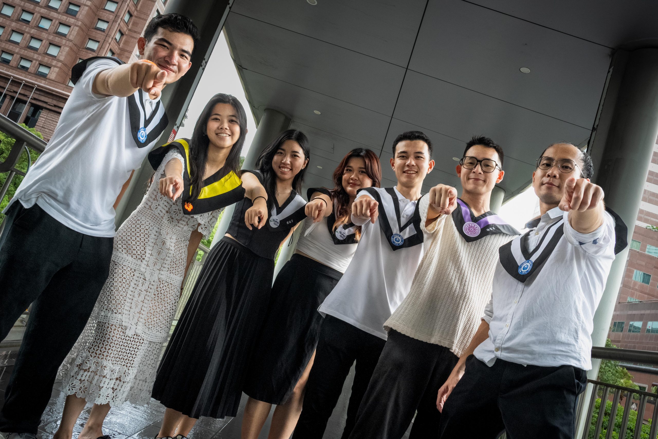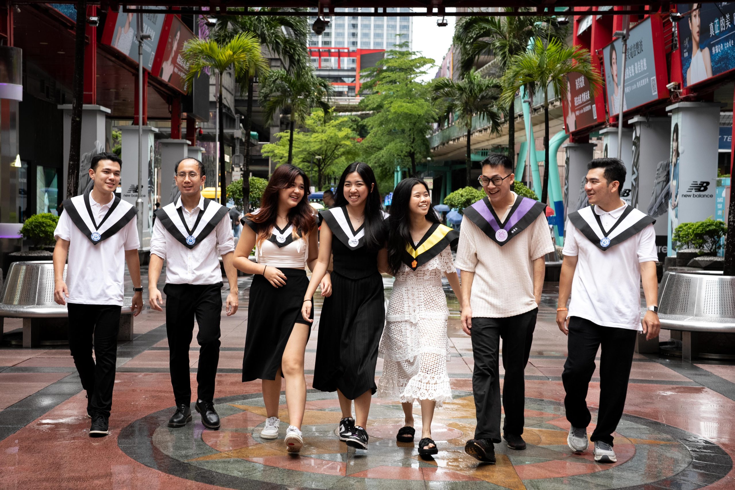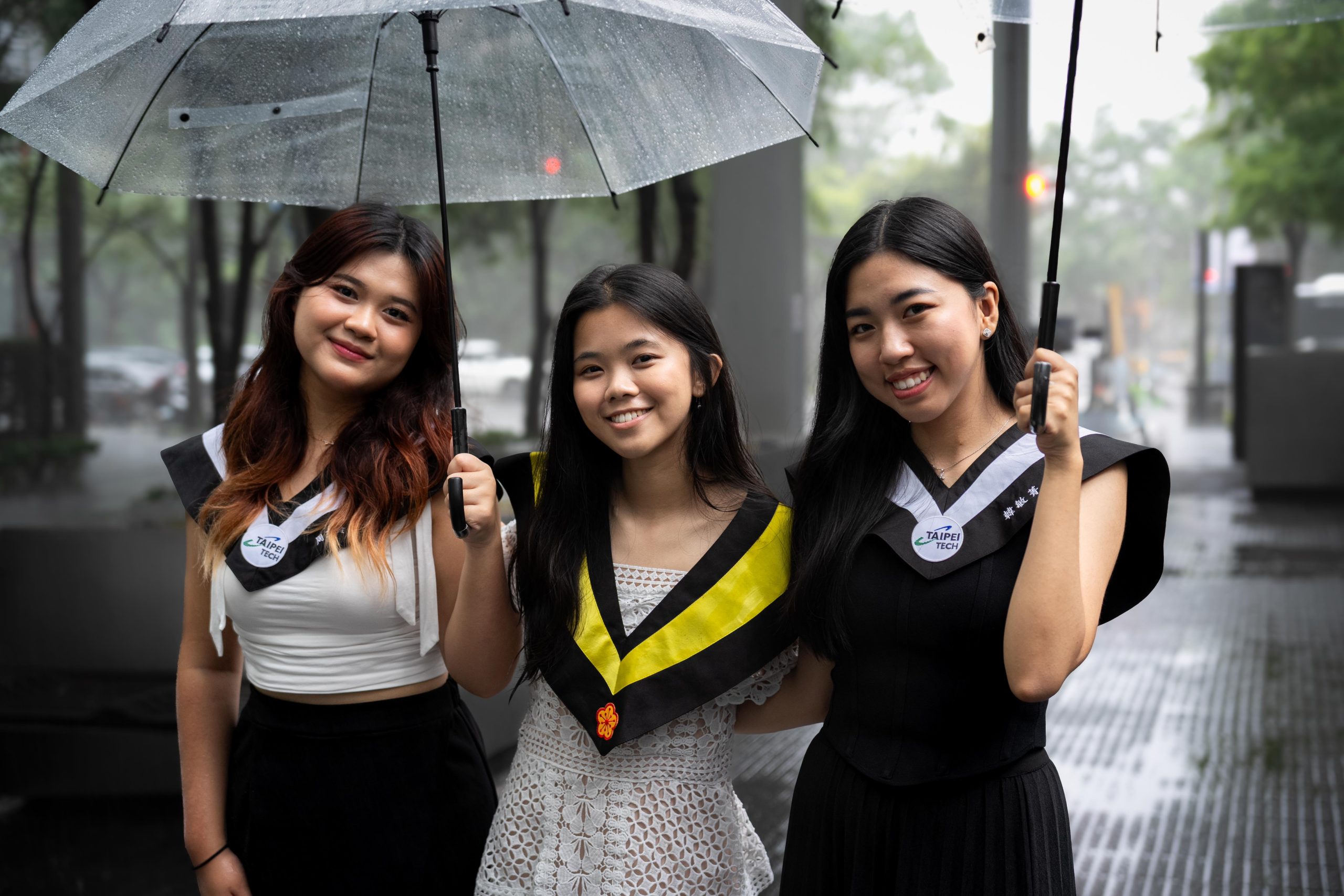 Set against iconic Taipei landmarks like Taipei 101, breezy sidewalks, and urban streets, each shot embraced the raw energy of the day. Whether it was group laughs under umbrellas, playful moments on the wet grass, or strong confident stances in academic regalia — every frame spoke of unity and unforgettable journeys.